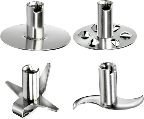 - Hak-mes, Hakmolen groot, Hakmolen klein, Klop-mes, Kruidenmaler, Kruis-mes, Pureer-mes, Raspschijf, S-mes, Snijschijf