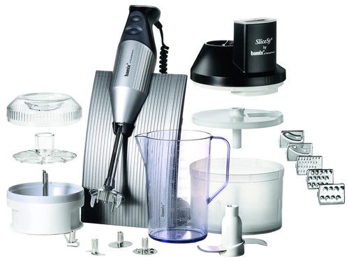 Met de Bamix Superbox Zilver haal je een volwaardige keukenmachine in huis. De box bevat ten eerste de Bamix SwissLine M250. Een staafmixer die zuinig en stil in gebruik is, maar toch bijzonder krachtig. Daarnaast worden de drie standaard hulpstukken die bestaan uit het multimesje, een klopper en menger meegeleverd, net als een extra vleesmes. Verder bestaat de box uit de SliceSy, de Processormaalbak met powerdisk en 3 verschillende bekertjes. Met de drie hulpstukken en het vleesmes gebruik je de staafmixer voor diverse doeleinden. De klopper voor bijvoorbeeld eiwit, het multimesje voor tapenade, de menger voor puree en met het vleesmes maak je lekkere tartaar. Met de SliceSy tover je vervolgens je staafmixer om tot een foodprocessor met behulp van de hakmolen en 5 verschillende opzetstukken om te raspen en te snijden. De processormaalbak met powerdisk helpt je ingrediënten tot poeder te vermalen en de bekers bestaan uit een mayonaisebekertje en een 0,5 en 1 liter beker. Na gebruik reinig je de accessoires in de vaatwasser en de staafmixervoet spoel je af onder de kraan.