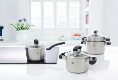 De kookpannen zijn geschikt voor alle warmtebronnen, inclusief inductie en gebruik in de oven tot aan 230 graden Celsius.