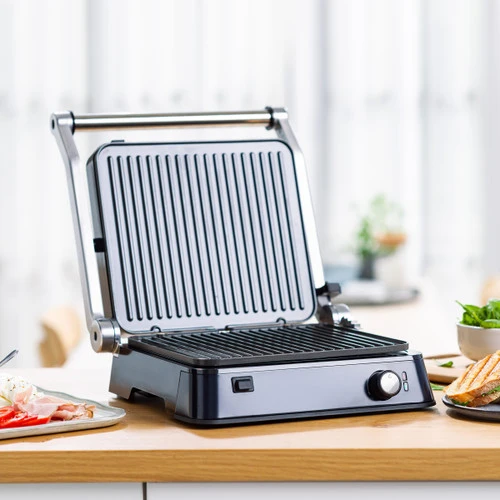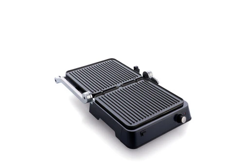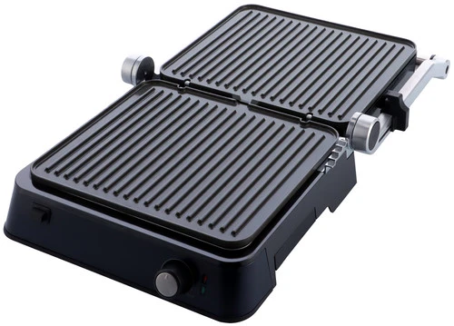 De contactgrill klap je ook helemaal open, zodat je hem als tafelgrill gebruikt.