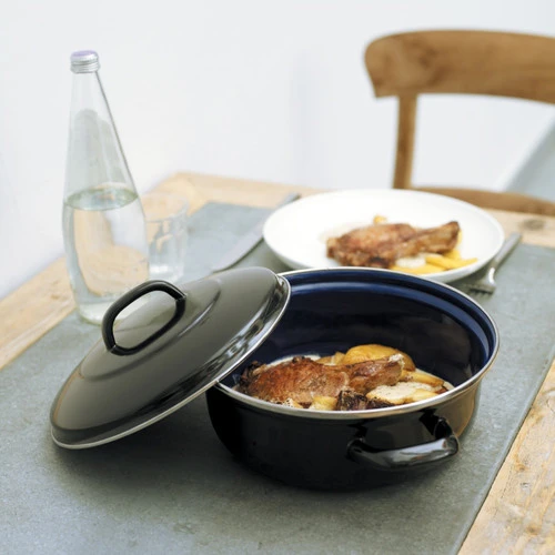 De geëmailleerde binnenzijde is glad, zodat ingrediënten niet vastkleven.