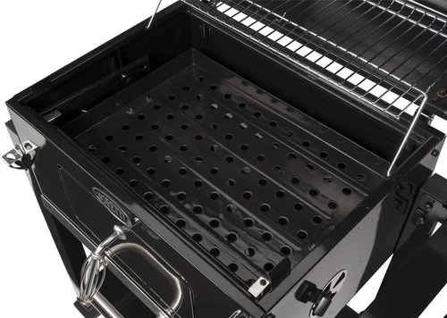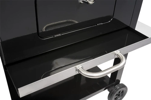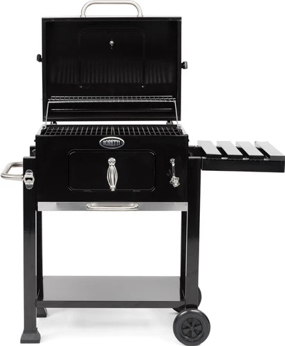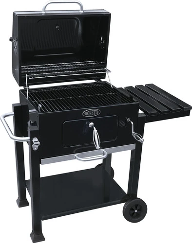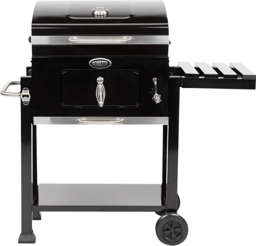 Wil je een houtskoolbarbecue met een optimale temperatuurcontrole? Dan is de Boretti Carbone de geschikte barbecue voor jou. De houtskoolbarbecue heeft namelijk een kolenvlak dat je van boven naar beneden verstelt met de zwenkhendel. Hierdoor heb je de mogelijkheid om de temperatuur aan te passen, zonder hierbij je handen te branden. Je hebt nog meer controle over de temperatuur dankzij de 4 luchtroosters en je leest de temperatuur af van de dekselthermometer. Na gebruik schuif je eenvoudig de asopvanglade onder de barbecue vandaan om deze te legen. Het werkblad is opklapbaar waardoor de barbecue minder ruimte inneemt in de schuur. Met het handvat en de wielen verplaats je de barbecue gemakkelijk naar een andere plek in de tuin.