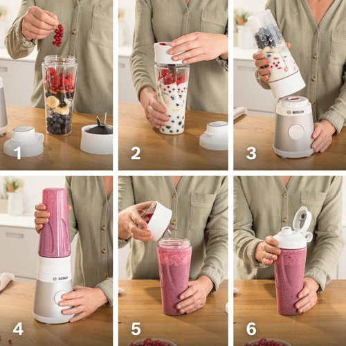 Je gebruikt de blendbeker om in te mixen, uit te drinken en om mee te nemen voor onderweg.