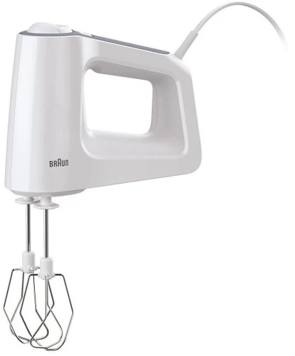 Met de Braun MultiMix 3 HM3105 handmixer bereid je verschillende soorten beslag en pureer je ingrediënten. Met de staafmixervoet bereid je soepen, smoothies en sauzen zonder te spatten dankzij de unieke vorm. De deeghaken kneden je pizza- of taartdeeg, terwijl de gardes je helpen bij het luchtig kloppen van slagroom en eiwitten. Door de 5 snelheden en de turbofunctie houd je optimale controle over het mixproces. De Braun MultiMix 3 HM3105 handmixer heeft een comfortabel en stabiel soft grip handvat. Wel zo veilig als je natte of vette handen hebt.