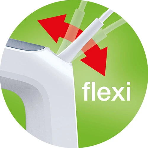 Door het flexibele snoer en de platte achterkant zet je de mixer gemakkelijk even neer.
