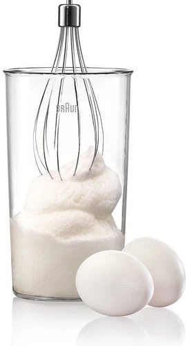 Met de meegeleverde ballongarde klop je slagroom, eiwitten en licht beslag op.