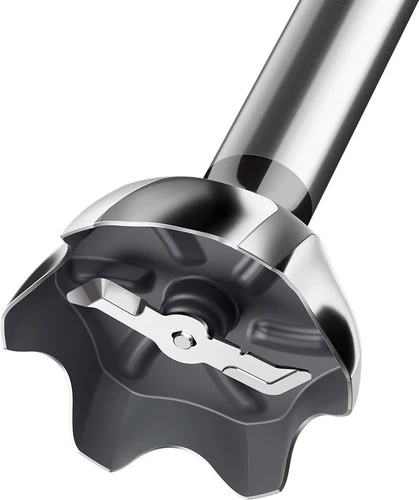 Je gebruikt deze staafmixer kort voor harde ingrediënten en langer achter elkaar voor zachte ingrediënten.