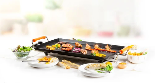 Dankzij het compacte formaat en de rechthoekige vorm neemt de grill weinig ruimte in beslag op de eettafel.