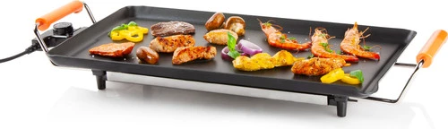 De tafelgrill beschikt alleen over een gladde plaat en bevat geen andere meegeleverde platen zoals een geribbelde of een wafel plaat.