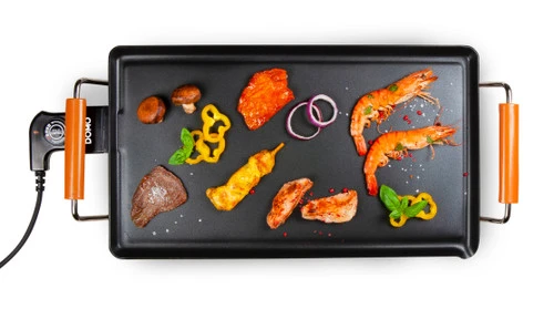 Dankzij het compacte formaat en de rechthoekige vorm neemt de grill weinig ruimte in beslag op de eettafel.