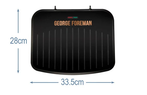De George Foreman Fit Grill Medium Koper is een grill die snel opwarmt en gemakkelijk op te bergen is. De anti-aanbaklaag zorgt dat eten niet aan de grill blijft plakken en dat je deze gemakkelijk schoonmaakt. Naast het compacte ontwerp, waardoor je de grill makkelijk opbergt, gebruik je deze George Foreman grill ook in de gekantelde stand. Hierdoor glijdt vet eenvoudig in het daarvoor bedoelde opvangbakje en is vlees zoals een hamburger een stuk minder vet dan bij een horizontale bereiding. De grill is zo ontworpen dat deze gemiddeld 30% minder ruimte inneemt dan vergelijkbare grills. Je bergt de grill namelijk zowel verticaal als horizontaal op.