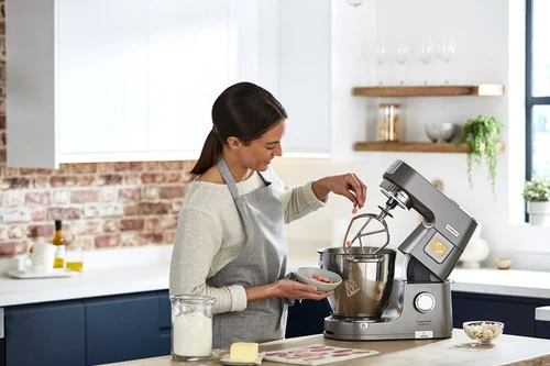 Je haalt met de Kenwood Chef Titanium Patissier XL KWL90.004SI een veelzijdige keukenmachine in huis waarin je brooddeeg laat rijzen en chocolade laat smelten. Met het krachtige vermogen van 1.400 watt meng je zelfs alle zware ingrediënten. De machine heeft 13 snelheden, inclusief pulse en fold functie én 3 roersnelheden. Op het intuitive touchscreen staan vooraf ingestelde functies voor je klaar. Met deze gebruiksvriendelijke navigatie heb je het mengen en mixen goed onder controle. De machine is uitgerust met een ingebouwde weegschaal, zo bespaar je tijd en afwas door je ingrediënten rechtstreeks in de mengkom te wegen. Voor beter zicht in de mengkom, zit er verlichting in de kom die met één hand te bevestigen is. De keukenmachine heeft 2 mengkommen, zo kom je er nooit één tekort.