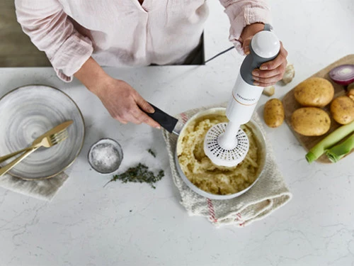 Je maakt zelf aardappelpuree of hakt verse kruiden met de meegeleverde pureerstaaf en hakmolen.