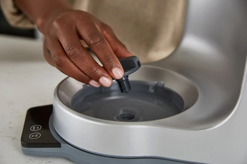 Met de geïntegreerde weegschaal weeg je de ingrediënten direct in de mengkom.