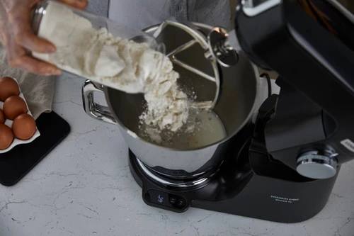 Door de ingebouwde weegschaal weeg je ingrediënten direct in de mengkom af.