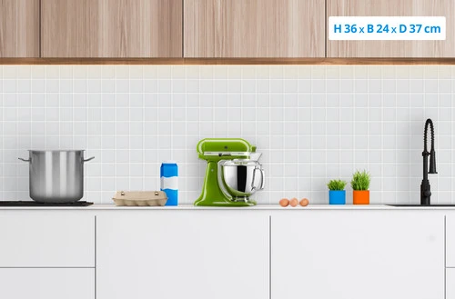 Met de KitchenAid Artisan Mixer 5KSM175PSEMA Matcha maak jij met weinig inspanning deeg en beslag. Deze krachtige keukenmixer heeft een vermogen van 300 watt, maar de motor bevindt zich in de kop. Hierdoor kan hij met gemak zwaar brooddeeg aan, want er gaat geen energie verloren tussen de menghaak en de motor. De kop van de KitchenAid is kantelbaar, hierdoor verwissel je de deeghaken eenvoudig. Doordat je 2 mengkommen krijgt, hoef je tussendoor niet af te wassen en het antispatdeksel voorkomt een aanrecht vol beslagspetters. Wil je de mogelijkheden van je KitchenAid Artisan verder uitbreiden? Er is een groot assortiment opzetstukken verkrijgbaar. Deze bevestig je op het aansluitpunt aan de voorzijde.
