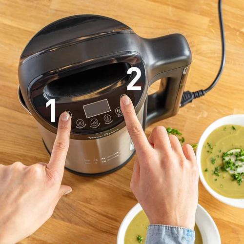 De blender heeft 4 programma’s voor een romige soep, soep met stukjes, smoothies en blenden.
