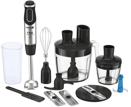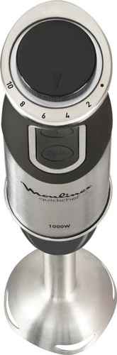 Dankzij de meegeleverde hakmolen hak je ook ingrediënten fijn met de Moulinex Quickchef 3in1 DD655810. Maak bijvoorbeeld zelf pindakaas of hak een uitje in kleine stukjes. Met de ballongarde klop je eiwitten of licht beslag op, zoals slagroom of pannenkoekenmix. De rvs staafmixervoet is erg stevig en gaat hierdoor lang mee. Daarnaast neemt ‘ie geen geur-, kleur- en smaakstoffen aan. Zo mix je een tomatensoep zonder dat de staafmixervoet rood blijft. De 10 standen zorgen ervoor dat je de snelheid nauwkeurig instelt, zodat je de juiste kracht hebt voor de bereiding. In de meegeleverde maatbeker meet je gemakkelijk vloeistoffen af en pureer je kleine hoeveelheden. Denk bijvoorbeeld aan het maken van mayonaise of aioli.