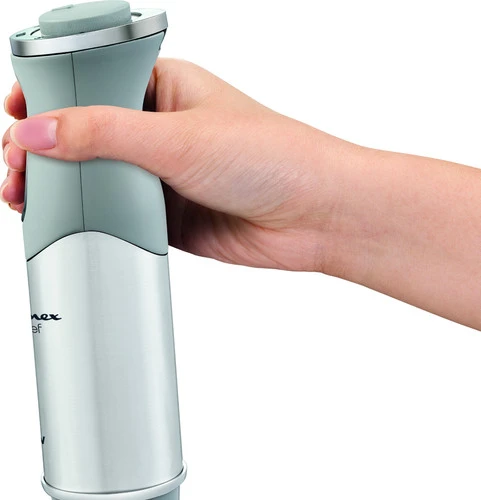 Met de Moulinex QuickChef DD650D10 haal je een krachtige staafmixer in huis waarmee je zonder moeite ingrediënten pureert. De staafmixer heeft namelijk een vermogen van 800 watt. Je stelt de staafmixer met 10 snelheden in en hebt daardoor altijd een snelheid die past bij wat je nodig hebt. Je pakt de DD650D10 confortabel bij de antislip handgreep vast waardoor de Quickchef niet uit je handen valt. Spatbescherming zorgt dat je keuken na het mixen geen kliederboel is. De stevige rvs mixervoet gaat langer mee dan kunststof exemplaren en neemt geen geur, kleur en smaakstoffen aan. Handig, wanneer je verschillende bereidingen achter elkaar maakt.