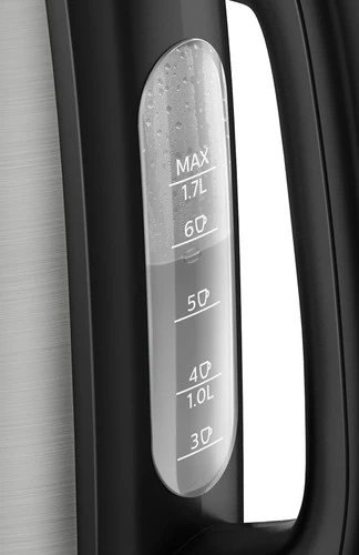 voor hoeveel kopjes thee je water kookt. Je vult de waterkoker eenvoudig onder de kraan bij via de ruime vulopening. Het uitneembare antikalkfilter houdt alle kalkslangaandeeltjes tegen. Deze spoel je eenvoudig schoon onder de kraan.