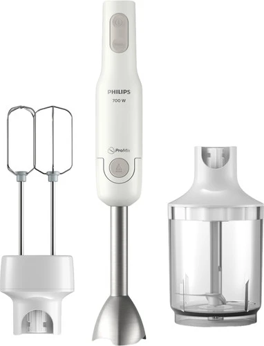 Je gebruikt deze staafmixer kort voor harde ingrediënten en langer achter elkaar voor zachte ingrediënten.