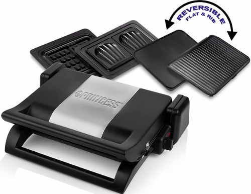Dankzij de meegeleverde bakplaten maak je tosti’s, wafels en grill je groenten.