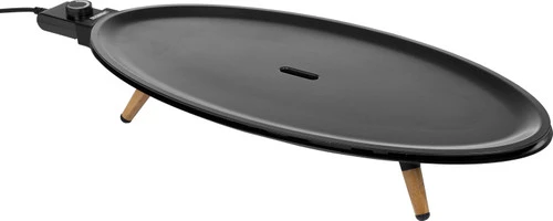 De Princess Table Chef Elypse Pure is geschikt voor 6 personen, dankzij het grote formaat. Je stelt de temperatuur in met de 3 standen. Zet ‘m bijvoorbeeld hoog om een biefstukje aan te bakken en laag als je toe bent aan wat groente of als je bijna bent uitgegeten. In het midden van de plaat zit een vetafvoergat, zodat je overtollig vet gemakkelijk van de plaat haalt. De uitneembare bakplaat reinig je na gebruik eenvoudig in de vaatwasser. De pootjes aan de onderkant draai je los, zodat je de grill eenvoudig opbergt.