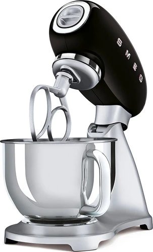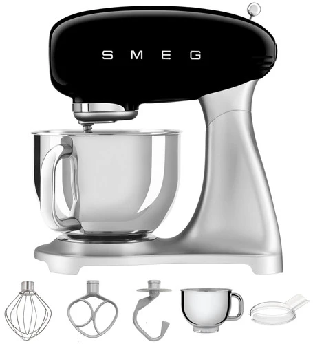 Met de SMEG SMF02BLEU Zwart heb jij als hobby bakker een handige keukenmixer in huis waarmee je pizzadeeg en taartbeslag maakt. Dankzij het vermogen kneed je meerdere bereidingen achter elkaar. Door de 10 ingebouwde standen heb je veel controle op het eindresultaat. Wel zo handig, want zo gebruik je de lage stand voor het kneden van deeg en een hogere stand voor het opkloppen van slagroom. Via de soft start begint de machine rustig met mengen en wordt het beslag niet uit de rvs mengkom van 4,8 liter geslagen. Ben je klaar met bakken, dan was je de mengkom en accessoires gemakkelijk af in de vaatwasser.