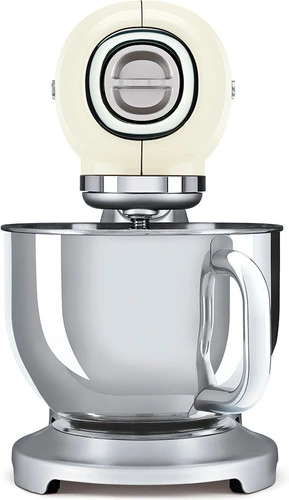 Met de SMEG SMF02CREU Crème heb jij als hobby bakker een handige keukenmixer in huis waarmee je pizzadeeg en taartbeslag maakt. Dankzij het vermogen kneed je meerdere bereidingen achter elkaar. Door de 10 ingebouwde standen heb je veel controle op het eindresultaat.Wel zo handig, want zo gebruik je de lage stand voor het kneden van deeg en een hogere stand voor het opkloppen van slagroom. Via de soft start begint de machine rustig met mengen en wordt het beslag niet uit de rvs mengkom van 4,8 liter geslagen. Ben je klaar met bakken, dan was je de mengkom en accessoires gemakkelijk af in de vaatwasser.