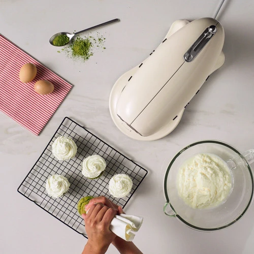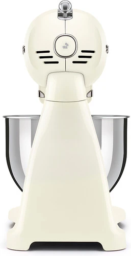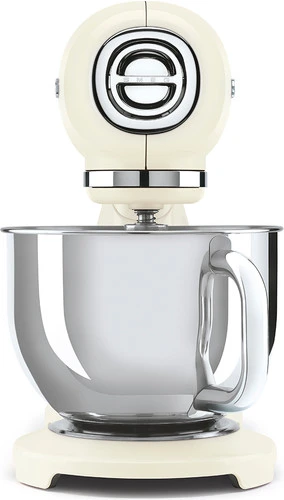 Met de SMEG SMF03CREU Crème staat er een vintage keukenmixer op jouw aanrecht waarmee je brooddeeg en taartbeslag maakt. De meegeleverde opzetstukken en 10 ingebouwde standen geven je veel controle en invloed op het eindresultaat. Je gebruikt de lagere standen om de ingrediënten tot een goed beslag te kneden. De hogere standen gebruik je om de slagroom voor op je taart te kloppen. De soft start zorgt ervoor dat de mixer rustig met mengen begint. Handig. Zo slaat de keukenmixer niet het beslag uit de rvs mengkom van 4,8 liter. Als je klaar bent, reinig je de losse onderdelen en mengkom eenvoudig in de vaatwasser.