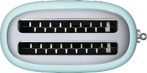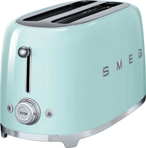Rooster in 1 keer 4 sneden brood met de SMEG TSF02PGEU Watergroen. Deze broodrooster heeft 2 sleuven waar elk 2 sneetjes in gaan. Hoe krokant het brood wordt, bepaal je met 1 van de 6 standen. Wil je croissants verwarmen of brood uit de vriezer eten? Met de verwarmfunctie en de ontdooifunctie verwarm en ontdooi je het brood, zonder dat het krokant wordt. Deze Smeg broodrooster bedien je gemakkelijk door de hendel omlaag te duwen. Zodra de sneetjes krokant zijn, worden ze automatisch omhoog geduwd.