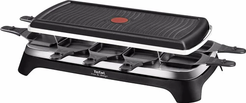 Met de Tefal Gourmet 10 Inox & Design RE4588 gourmet je tot 10 personen. Dankzij het hoge vermogen van 1.350 watt is het gourmetstel snel opgewarmd. De Tefal Thermo Signal-stip kleurt effen rood wanneer hij op temperatuur is. Handig, want zo weet je precies wanneer je de ingrediënten op de grillplaat legt. Verder gebruik je het gourmetstel tegelijkertijd ook als raclette. Zo smelt je in het pannetje een plakje kaas voor bijvoorbeeld je cheeseburger. Na gebruik was je de plaat met de hand af. Het netsnoer koppel je los van de grill, zodat je `m gemakkelijk opbergt in je keukenkastje.