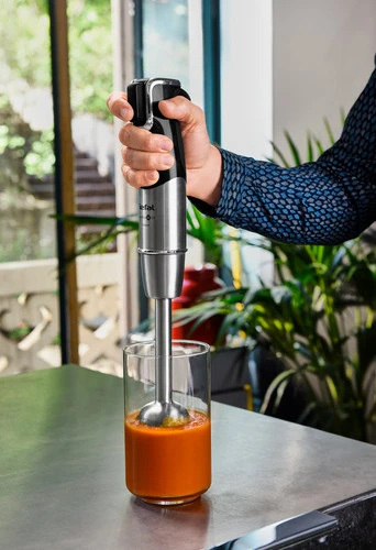 Met de Tefal InfinyForce Pro 5-in-1 HB95LD haal je een multifunctionele staafmixer in huis, dankzij de 5 meegeleverde accessoires. Zo krijg je er een hakmolen bij voor het snipperen van een ui of hakken van noten. Met de foodprocessor snijd je bijvoorbeeld groenten in dunne plakken. Je klopt slagroom op met de garde en maakt puree met de pureervoet. Pak gemakkelijk de mengbeker erbij wanneer je aan de slag gaat met mengen of kloppen. De staafmixer is uitgerust met Powelix Life messen. Deze messen gaan lang mee dankzij de titanium coating. Zodra je harder op de multi-speed trigger snelheidsregeling drukt, mixt de staafmixer vanzelf sneller. De losse onderdelen zet je na gebruik gewoon in de vaatwasser.