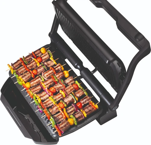 De Tefal OptiGrill+ XL GC7228 past automatisch de temperatuur en baktijd aan op de dikte en hoeveelheid van de ingrediënten, dankzij de kooksensor. Je grilt ook stukken vlees met de perfecte garing. Door de gaarheidsindicator en het geluidssignaal weet je namelijk precies wanneer je vlees rood, medium, of doorbakken is. De grill heeft 9 verschillende kookprogramma’s. Zo bereid je bijvoorbeeld heel gemakkelijk hamburgers, gevolgelte, zeevruchten of rood vlees. Naast de 9 programma’s is het ook mogelijk om zelf de temperatuur in te stellen met de 4 temperatuurstanden. Dankzij het grote grilloppervlak maak je gerechten voor 6 tot 8 personen tegelijk. Na gebruik zet je de grillplaten gewoon in de vaatwasser.
