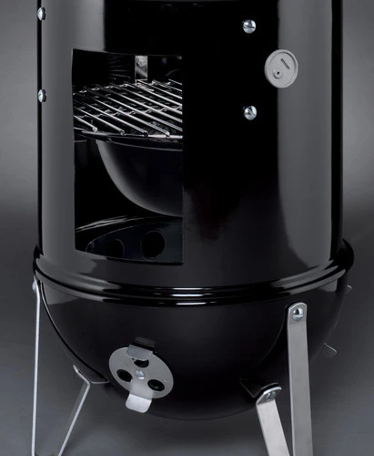Barbecueën op gas of elektriciteit? Dat is geen barbecueën. Volgens jou moet het roken, de fik erin en stoken maar. Daarom ben je gek op de Smokey Mountain Cooker. Hiermee voeg je een rooksmaak toe aan je gerechten. Deze rookoven beschikt over een grote opening, zodat je gemakkelijk briketten en rookhout bijvult om vlees, vis en groenten die aromatische rooksmaak mee te geven. Speel met de luchttoevoer voor het perfecte resultaat. Met de geïntegreerde dekselthermometer heb je constante controle over de temperatuur tijdens het barbecueën. Omdat de barbecue 2 verchroomde roosters en 2 niveaus voor roken en grillen heeft, biedt hij zeer uiteenlopende mogelijkheden. De porselein geëmailleerde wateropvangschaal (gevuld met water, wijn of bier) voorkomt dat je gerechten uitdrogen. Het druipbakje zorgt ervoor dat vetten worden opgevangen. Met zijn compacte formaat neem je de Smokey Mountain Cooker eenvoudig mee op vakantie. De meegeleverde hoogwaardige hoes beschermt de barbecue tegen vuil en regen.